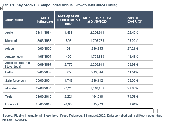 - It was unclear in 1997 that Amazon was going to be the everything store and a global logistics powerhouse (it was effectively selling books by e-mail order at the time) or when 23 years back to the day, 16 September 1997, Steve Jobs came back as iCEO of Apple (the real birth of today’s Apple) that it would be the smartphone powerhouse it is today. Similar can be said of Microsoft or Netflix at the time of their listing and potentially blockchain and digital currencies (like bitcoin) today.
