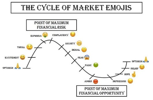 c) Intent versus Execution - To us, the market’s reaction function to central bank/government policies is likely to follow the classic cycle of market emotions through Emojis (given our new ways of working this seems more than apt).